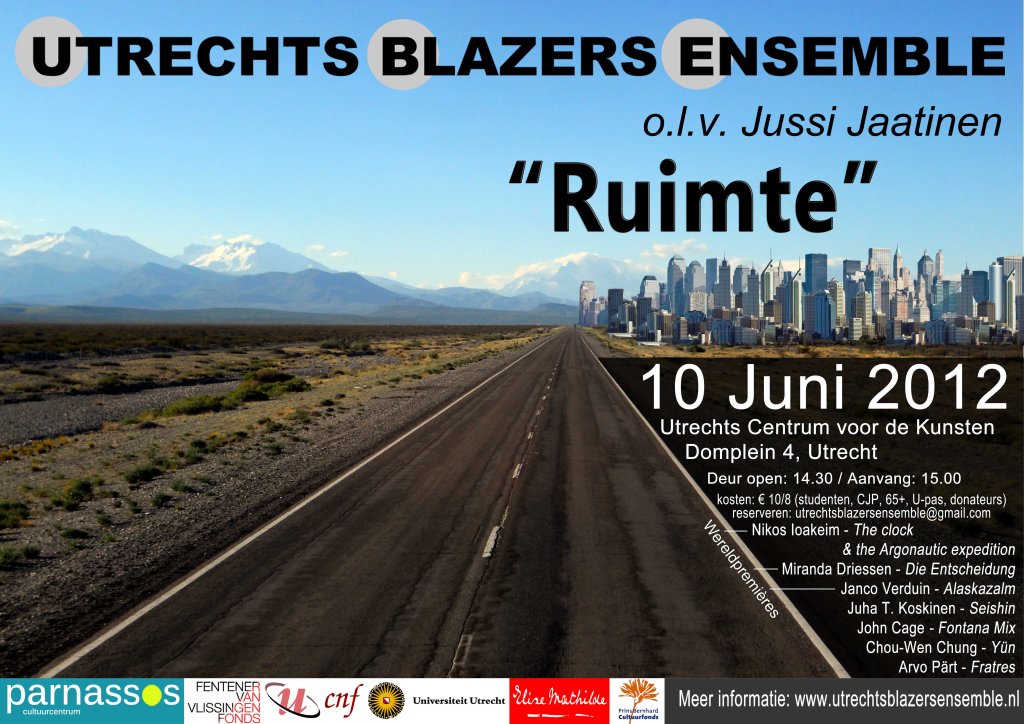 10/06 Utrechts Centrum voor de Kunsten, with the UBE led by Jussi Jaatinen, works of Cage and Ioakeim, Verduin, Driessen (premières)