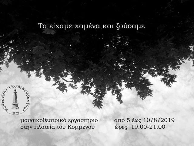 5-10/8/2019 19.00-21.30 Πλατεία Κομμένου Άρτας, Τα είχαμε χαμένα και ζούσαμε, Πενθήμερο μουσικοθεατρικό εργαστήριο